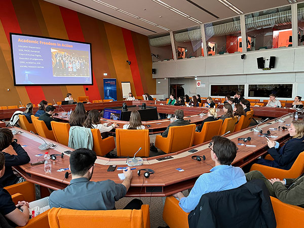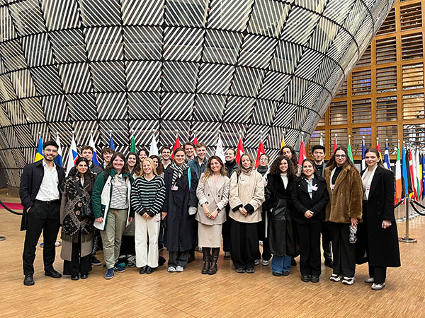 The students began the week with two days discovering the institutions in Strasbourg. First up was a visit to the European Court of Human Rights, where the students learnt more about the workings of the court and the eligibility process for bringing a case before the court. Next, they went across the road to the Council of Europe, where they received a briefing from Tatiana Monney on the New Democratic Pact for Europe to learn about the steps that can be taken to protect democracy in Europe. The visit was completed with a tour of the hemicycle. On the following day at the European Parliament, the students observed a packed plenary session where MEPs were debating women's rights on the occasion of International Women's Day. President Roberta Metsola also announced the first winners of the European Order of Merit, before the room stood for a live performance of the European anthem.
